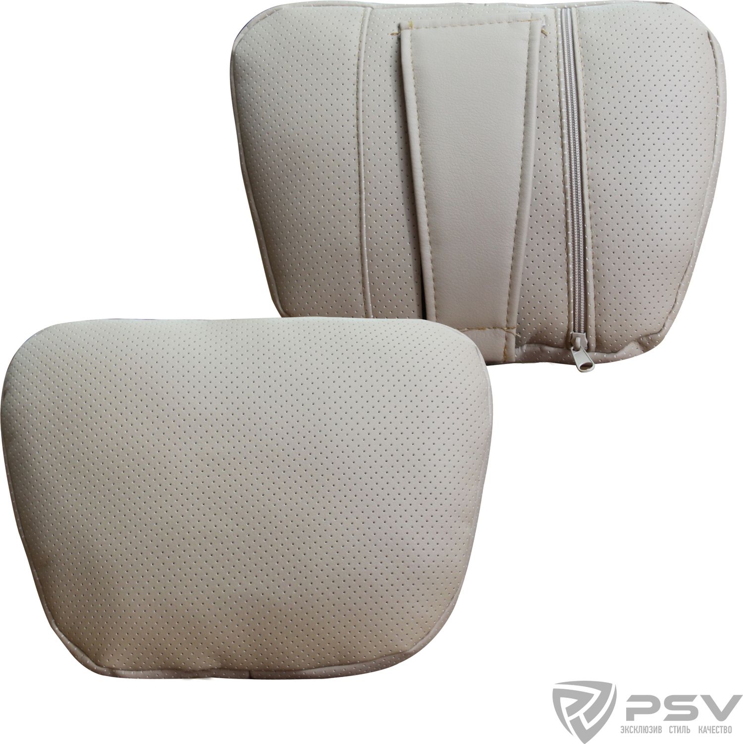 Подушка PSV Lux Way на подголовник, цвет Бежевый (полностью), экокожа. Артикул 132340